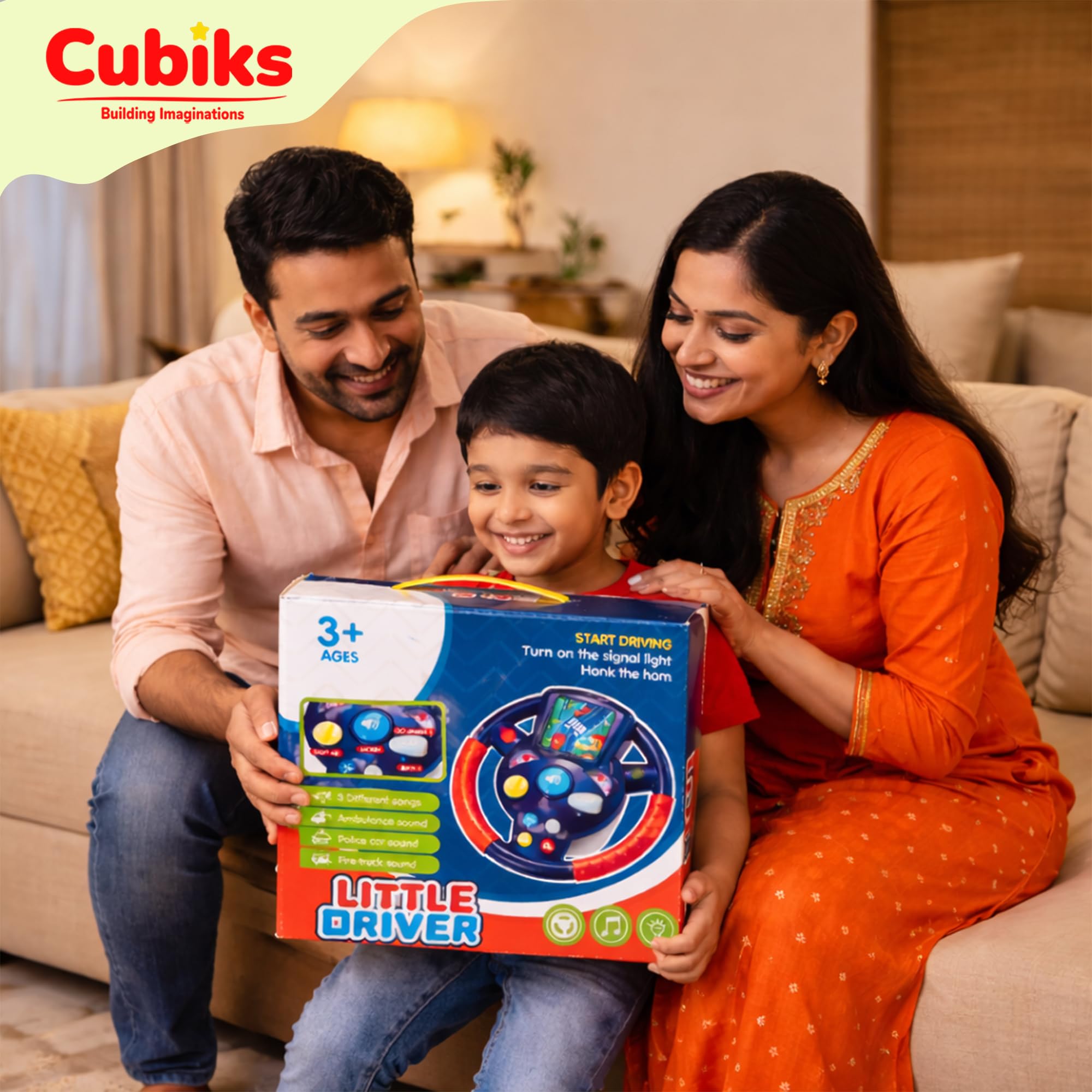 Details: Ignite your child’s imagination with the CUBIKS STEERING WHEEL TOY FOR KIDS, a fun and engaging PRETEND PLAY DRIVING EXPERIENCE that turns everyday playtime into an exciting CAR DRIVING ADVENTURE. Specially designed for TODDLERS, BOYS & GIRLS, this REALISTIC CAR DRIVING SIMULATOR delivers endless entertainment while supporting EARLY LEARNING AND SKILL DEVELOPMENT. Equipped with bright FLASHING LIGHTS, engaging SOUND EFFECTS, and cheerful MUSIC MODE, this AUTOMATIC STEERING WHEEL TOY looks and feels like a real car dashboard—perfect for little drivers who love to STEER, HONK, AND EXPLORE. Built using HIGH-QUALITY, NON-TOXIC & CHILD-SAFE MATERIALS, the CUBIKS steering wheel toy ensures MAXIMUM SAFETY AND DURABILITY for everyday play. The ROTATING STEERING WHEEL helps improve HAND-EYE COORDINATION, FINE MOTOR SKILLS, and REFLEX DEVELOPMENT, while the easy-to-press MULTI-FUNCTION BUTTONS allow kids to activate REALISTIC ENGINE SOUNDS, fun MELODIES, and BLINKING LIGHTS with ease. This toy encourages IMAGINATIVE ROLE PLAY, helping children pretend they are driving cars, buses, or racing vehicles. Perfect for children 18 MONTHS AND ABOVE, this INTERACTIVE EDUCATIONAL TOY promotes COGNITIVE DEVELOPMENT by teaching CAUSE-AND-EFFECT LEARNING in a playful way. Toddlers enjoy rich SENSORY STIMULATION through sounds, lights, and motion, keeping them ENGAGED FOR LONG HOURS. Its COMPACT & LIGHTWEIGHT DESIGN makes it easy to carry, store, or use during TRAVEL, INDOOR PLAY, OR OUTDOOR FUN. An ideal choice for BIRTHDAY GIFTS, FESTIVE GIFTS, OR DAILY PLAYTIME, the CUBIKS STEERING WHEEL TOY FOR KIDS perfectly blends FUN, LEARNING, AND ENTERTAINMENT. Let your little one enjoy SAFE, JOYFUL, AND EDUCATIONAL PLAY while building creativity and confidence—because every turn of the wheel leads to a NEW ADVENTURE!