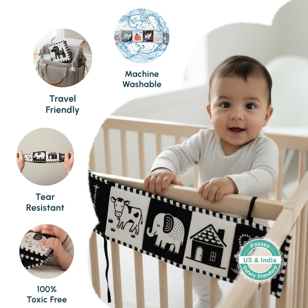 Curious Cub High Contrast Baby Cloth Book | Tummy Time Toys for Babies | Toys for 6 to 12 Months | New Born Baby Gifts | Books for 3 Month Old