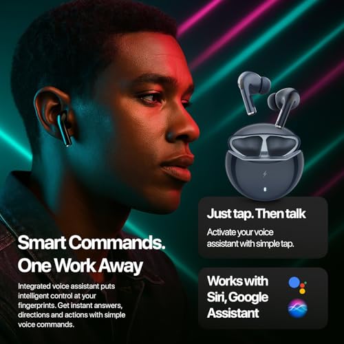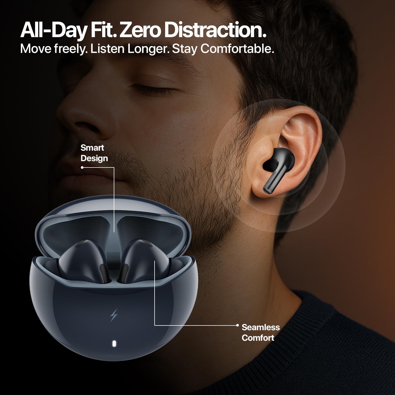 • Crystal-Clear Calls with Quad Mic ENC – Stay connected with superior call clarity. Ear buds featuring 4 advanced microphones and Environmental Noise Cancellation, these Bluetooth TWS earbuds capture your voice precisely while blocking out unwanted background noise—perfect for calls, meetings, or voice commands.