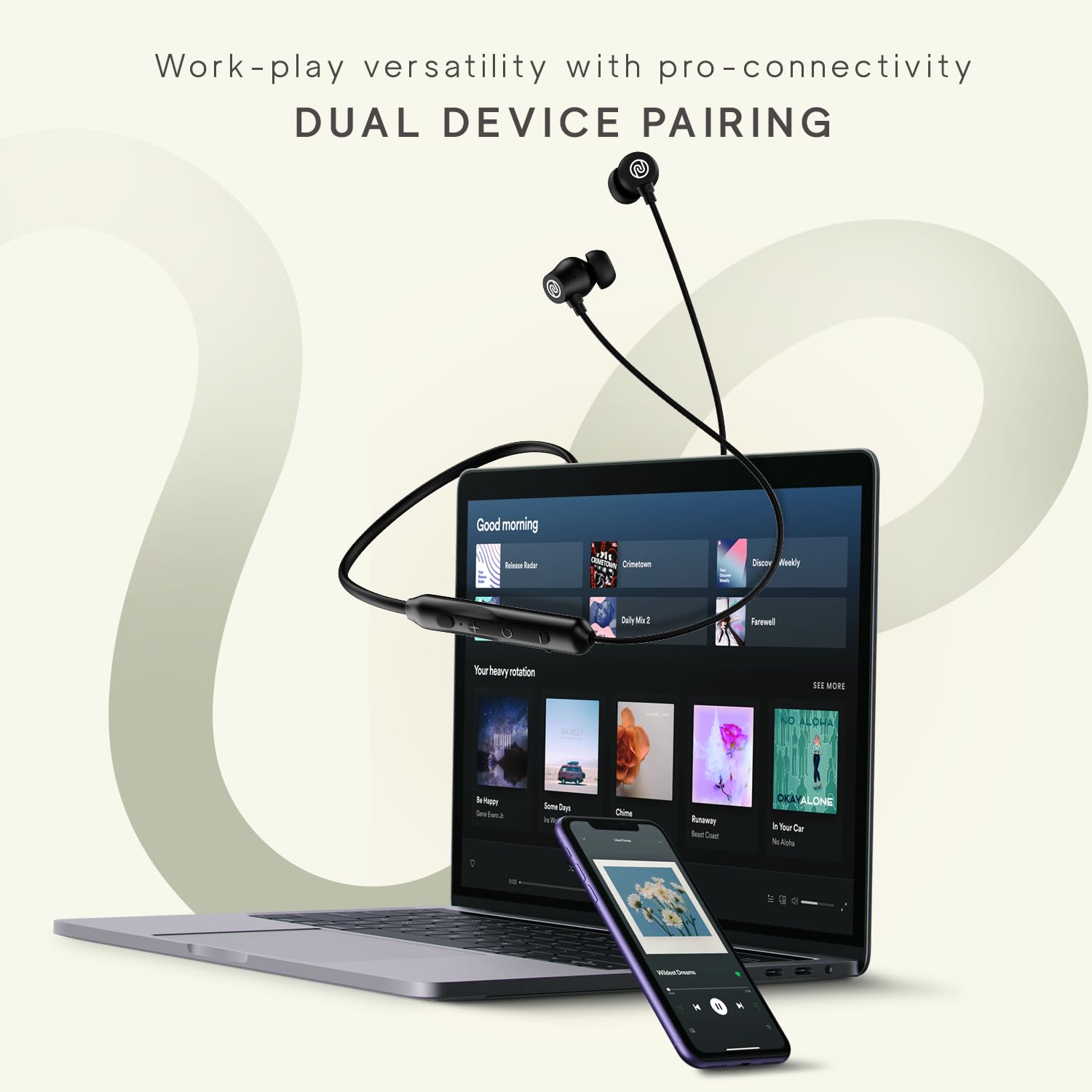 Noise Airwave Pro Bluetooth in Ear Neckband with Upto 32 dB ANC, 60H of Playtime, Dual Device Pairing, 3 Mic ENC for Calling, Low Latency(Upto 40ms), 13mm Driver (Matte Black)