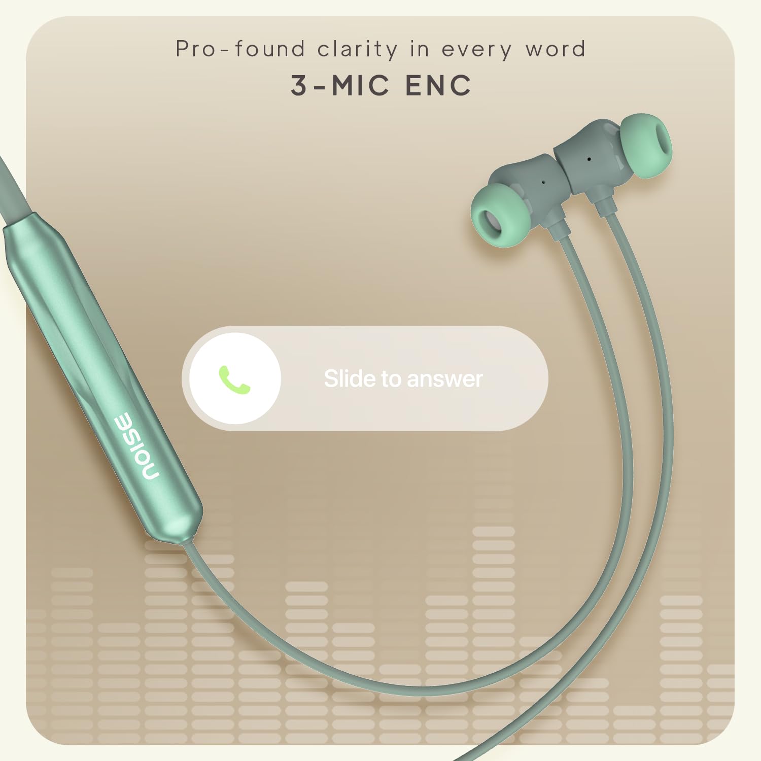 Noise Airwave Pro Bluetooth in Ear Neckband with Upto 32 dB ANC, 60H of Playtime, Dual Device Pairing, 3 Mic ENC for Calling, Low Latency(Upto 40ms), 13mm Driver (Metallic Green)