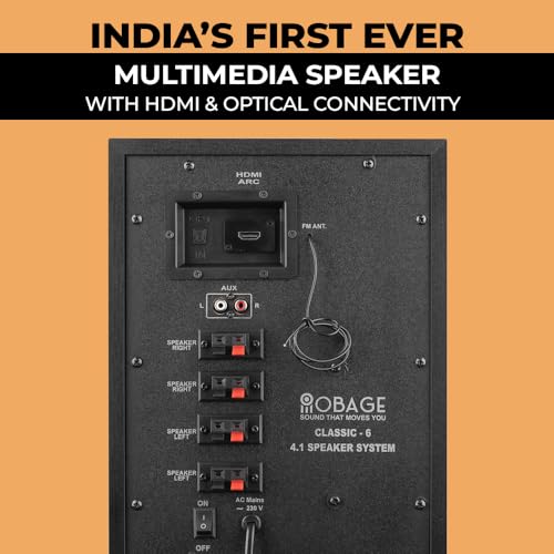 OBAGE Classic-6 4.1 Home Theatre System | 120W Output | HDMI ARC, Optical in, Bluetooth 5.3, USB, FM, AUX | Deep Bass Surround Sound for TV, Music & Movies