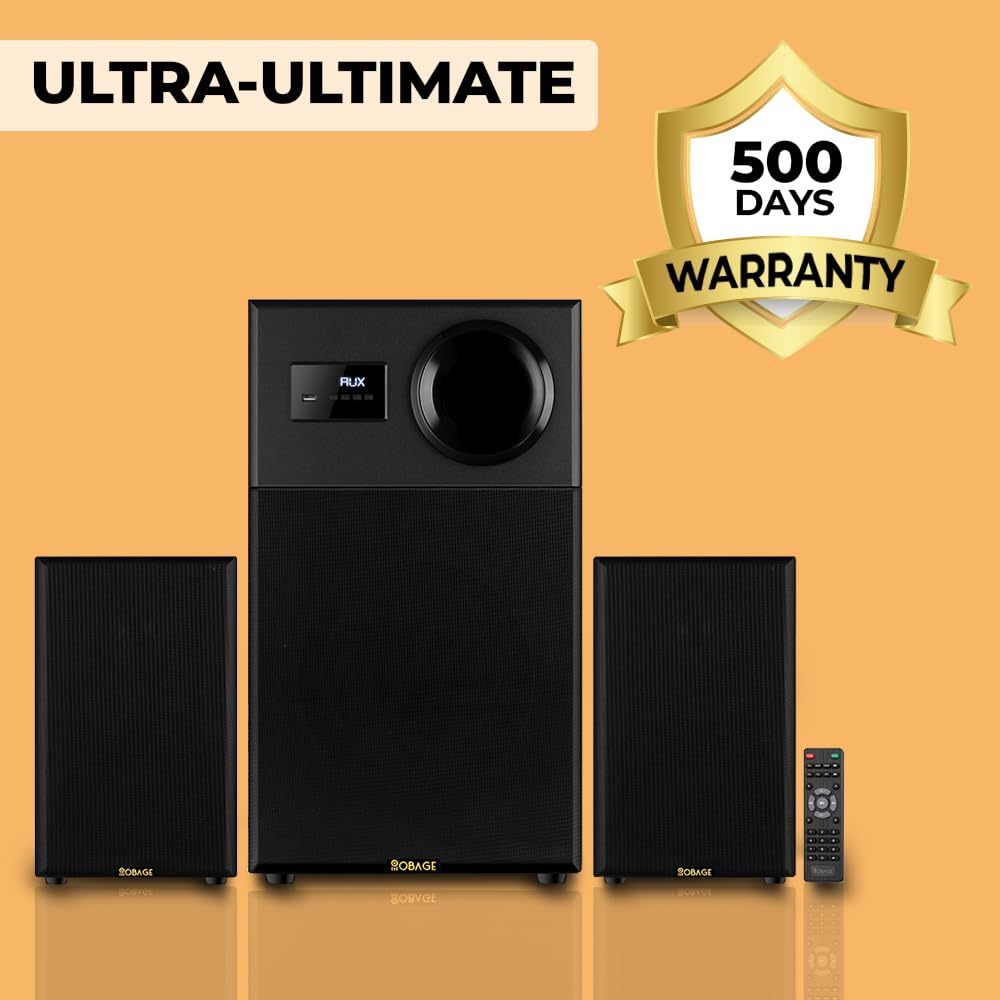 OBAGE Ultra Ultimate 2.1 Home Theatre System | 350W Peak Output | Powered Non-Pressed Subwoofer | Bluetooth 5.3, HDMI ARC, Optical in, USB | Deep Bass Surround Sound for TV, Music & Movies