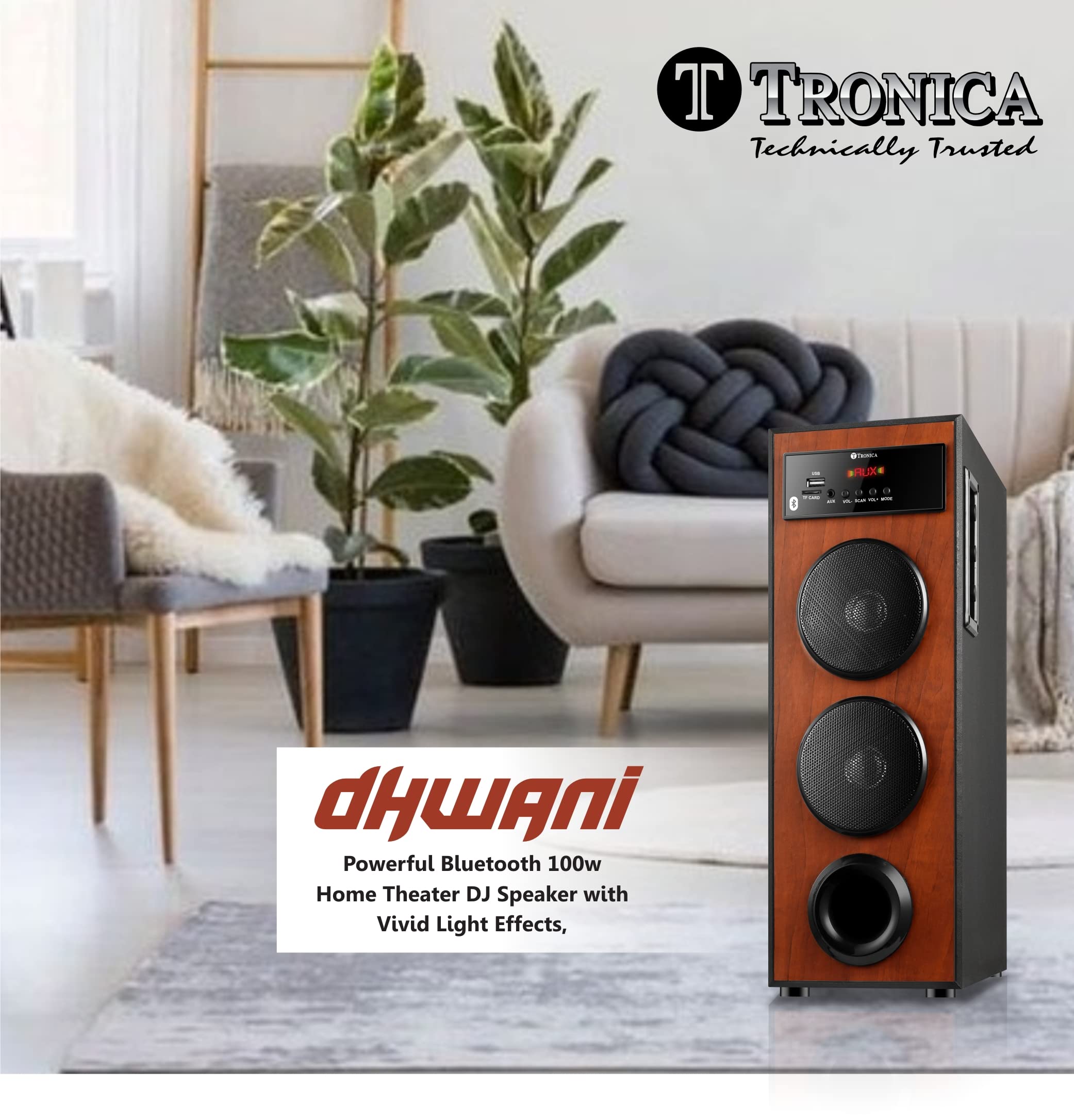 TRONICA Dhwani DJ 40W Bluetooth Tower Home Theater System with Free Wired MIC, Supports Pendrive/SD Card/FM/Aux/TV with Remote